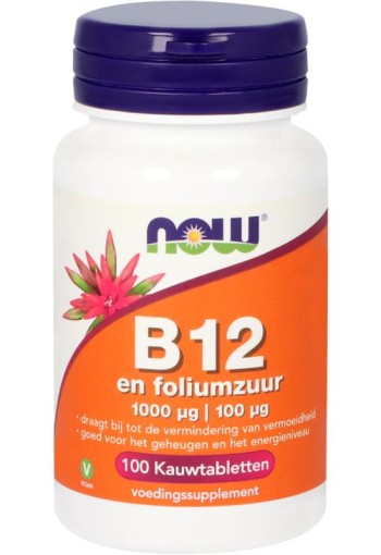 NOW Vitamine B12 1000mcg en Foliumzuur 100mcg (100 Kauwtabletten)