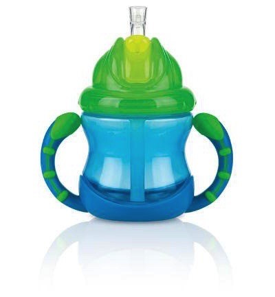 De flip dop houdt het rietje schoon wanneer de NûbyTM-beker niet in gebruik is. De handvatten aan deze beker maken de overgang van fles naar beker een stuk makkelijker.