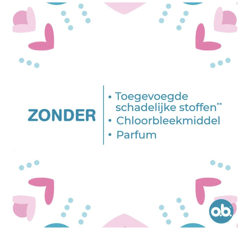 o.b.® Original Super Plus tampons met gebogen groeven leiden de vloeistof efficiënt naar de kern van de tampon. De StayDry-technologie zorgt voor een droog koordje en een fris en schoon gevoel. o.b.® Original Super Plus tampons zijn ideaal voor zeer zware menstruatiedagen. De tampons zijn gynaecologisch getest, hebben een kern die 100% plantaardig is, zonder schadelijke chemische stoffen (o.a. pesticiden). o.b.® Original Super Plus tampons zijn chloor- en parfumvrij.