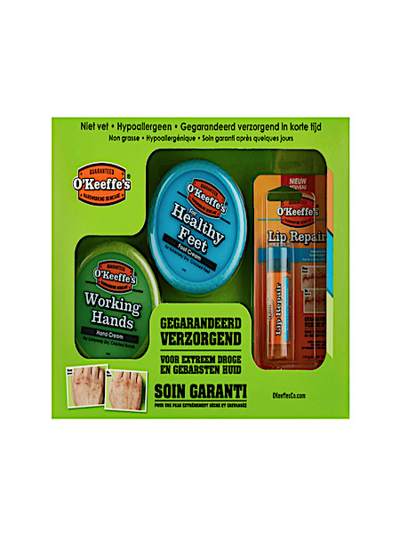 Drie producten van O'Keeffe's in een giftset.