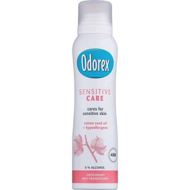 Odorex Sensitive Care Deodorant Spray is een milde en verzorgende deodorant speciaal ontwikkeld voor de gevoelige huid. Deze Spray heeft een zachte verzorgende geur en biedt tot wel 24 uur effectieve bescherming tegen transpiratie.