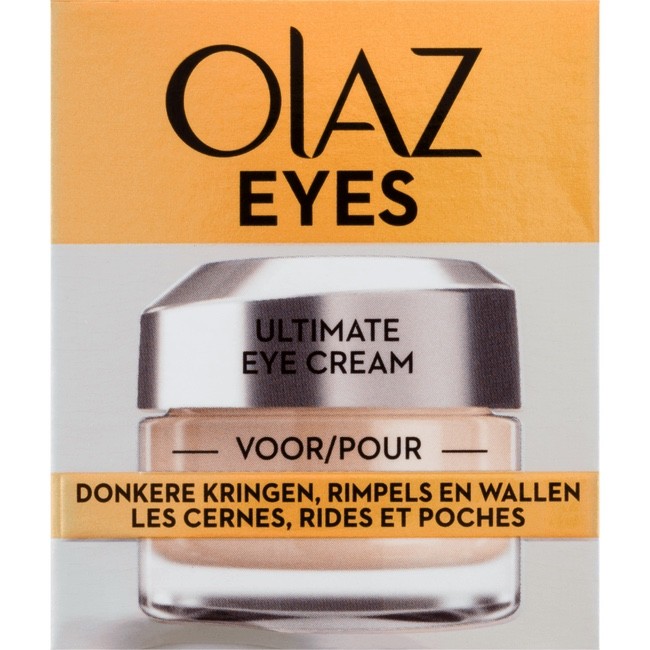 Onthul een jonger uitziende huid met Olaz Eyes Ultimate Oogcrème. Deze crème met meervoudige werking is speciaal ontwikkeld voor de gevoelige huid rondom de ogen. De crème biedt 3-in-1 voordelen om zichtbaar fijne lijntjes en rimpels te vervagen en de zichtbaarheid van donkere kringen en wallen te verminderen wanneer deze op de huid ingemasseerd wordt. De krachtige kleurcorrigerende formule, versterkt met peptiden en vitaminen, past bij elke huidtint en perfectioneert de uitstraling van de huid onmiddellijk, terwijl deze het huidoppervlak ook geleidelijk vernieuwt. Breng de Ultimate Oogcrème dagelijks aan rondom de ogen en let speciaal op donkere kringen, wallen en kraaienpootjes.