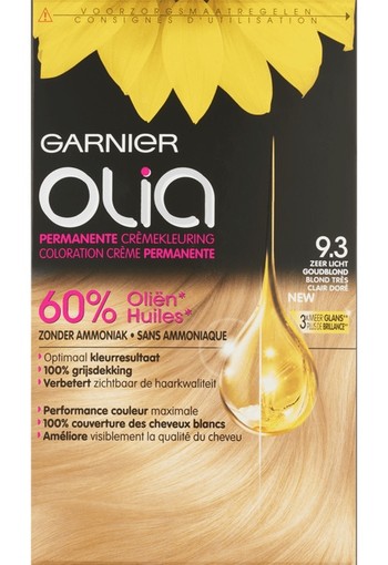 De experts van Garnier hebben ontdekt dat olie veel meer voor je haar kan doen dan alleen verzorgen. Door de oliën die zijn toegevoegd aan de kleurcrème dringen de kleurpigmenten dieper in je haar. Dat zorgt voor een maximale kleurintensiteit vanuit de kern van je haar. Deze techniek wordt ODS - Oil Delivery System genoemd. De techniek is zo krachtig dat er geen ammoniak meer nodig is en geeft een heerlijke bloemengeur. Met Olia wordt een optimale haarkleur en perfecte grijsdekking bereikt. De hoofdhuid en het haar worden optimaal verzorgd.