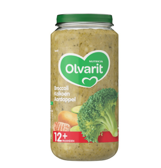 Olvarit 12m00 Broccoli Kalkoen Aardappel is speciaal gemaakt voor kindjes vanaf 12 maanden. De babyvoedingheeft de herkenbare smaak van broccoli. Door uw kindje al vroeg kennis te laten maken met de pure smaak van groente, helpt dit de smaak te herkennen en te waarderen. De smaak en textuur van Olvarit babyvoeding zijn aangepast op de leeftijd van uw kindje, om een goede smaakontwikkeling te ondersteunen.