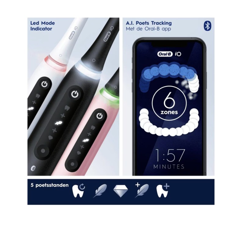 - De beste reiniging ooit van Oral-B met revolutionaire iO-technologie voor een professioneel zuiverend schoon gevoel en een zachte poetservaring