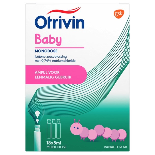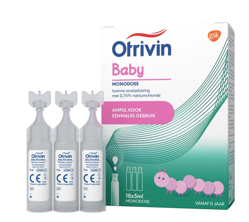 Otrivin Baby Monodose Steriele Zoutoplossing Vanaf 0 Jaar is een isotone zoutoplossing. Dit betekent dat de zoutconcentratie is aangepast om het neusje van je baby zachtjes te reinigen. De zoutoplossing is verpakt in 18 handige en hygiënische kleine flesjes. Otrivin Baby Monodose Steriele Zoutoplossing maakt overtollig slijm en korstjes zachter en dunner, waardoor deze makkelijk te verwijderen zijn.