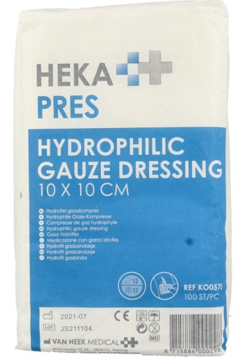 Hekapres Hydrofiele gaaskompres 10 x 10cm (100 Stuks)