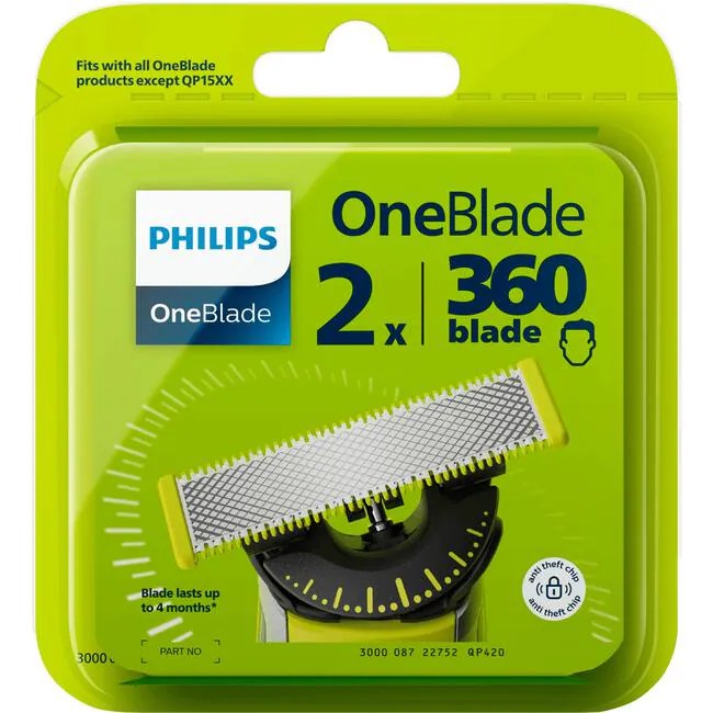 "De Philips OneBlade 360 QP420/50 Navulmesjes met 360 graden-technologie zorgt ervoor dat je haar van iedere lengte trimt, scheert en stylet met je OneBlade apparaat.