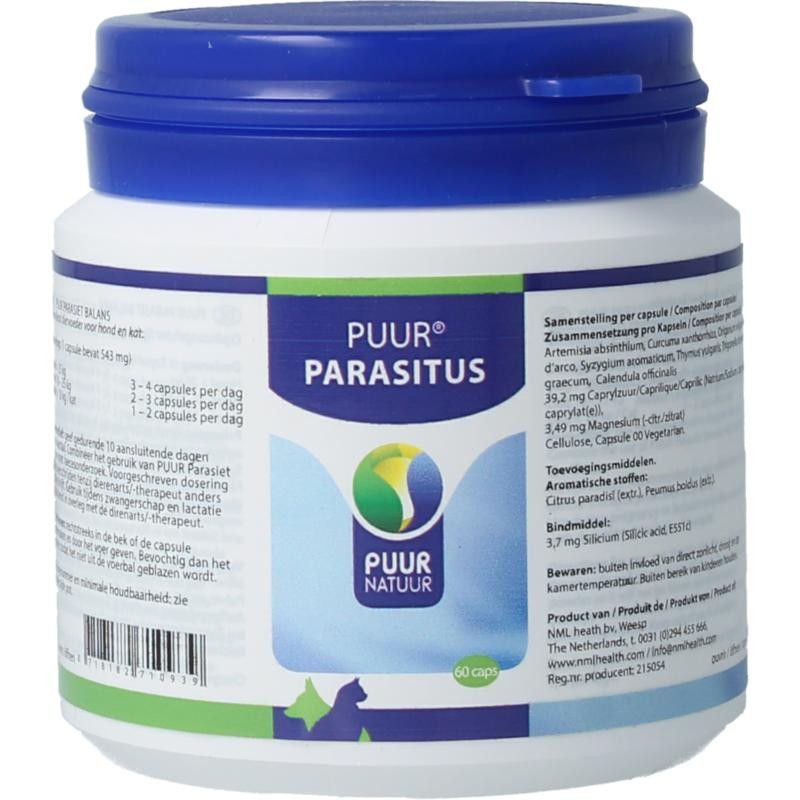 Artemisia absinthium, Calendula officinalis, Caryophyllus aromaticus, Citrus paradisi, Crucuma xanthorrhiza, Origanum vulgare, Pau d' Arco, Peumus boldus, Thymus vulgaris, Trigonella foenum-graecum, 39,2g Caprylzuur, 3,5 mg magnesium (citraat), microkristallijne cellulose, Siliciumdioxide
