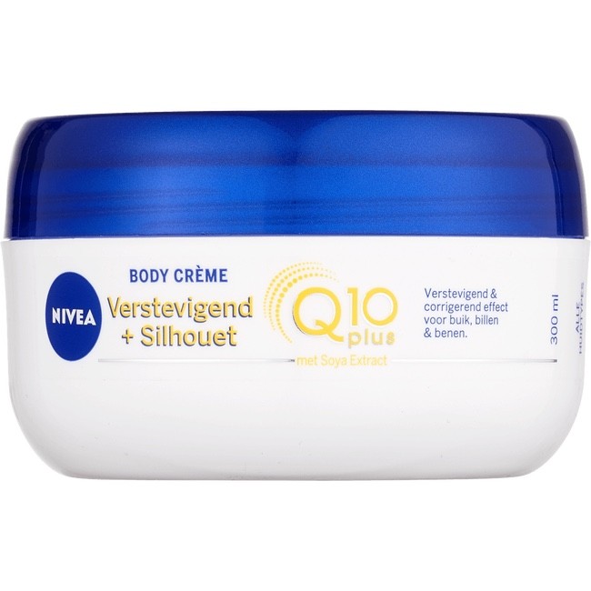 NIVEA Q10plus Verstevigende Body Crème heeft een krachtige formule met huideigen Co-Enzym Q10 en Soja. Dit verstevigt de huid in 2 weken en is zeer geschikt voor specifieke zones zoals buik, billen en bovenbenen. 74% van de vrouwen bevestigen: zichtbaar strakkere huid*. Je huid voelt ook heerlijk zacht aan. Huidvriendelijkheid dermatologisch goedgekeurd. Q10 komt je wellicht bekend voor, maar wat doet het precies? Q10 is in het kort een huideigen co-enzym dat de energieproductie in de cellen stimuleert. Als je ouder wordt vermindert de hoeveelheid Q10 in de huid. Dat betekent dat de huidcellen minder beschermd zijn en minder energie krijgen om zich te vernieuwen. De huid veroudert, verslapt en krijgt rimpels. Geen ramp, maar wel fijn om te weten dat NIVEA de hoeveelheid Q10 in je huid weer aanvult. De huid wordt gladder, steviger en straalt weer die jeugdige energie uit. Vind je het gek dat NIVEA dit ingrediënt in haar gezichts- en lichaamsproducten verwerkt!