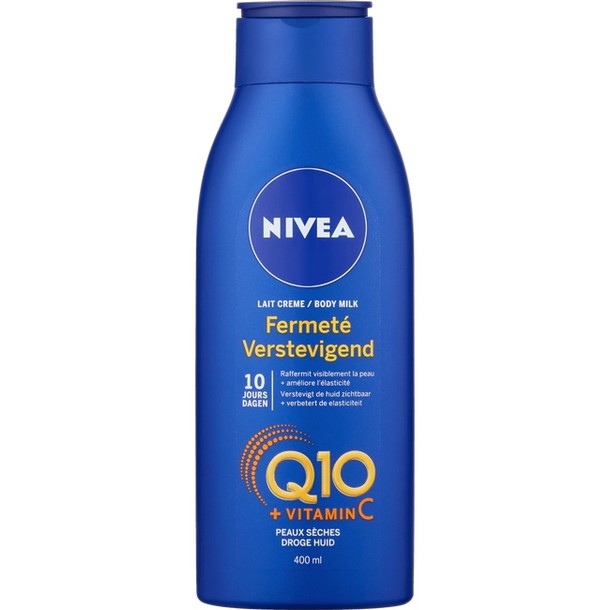 NIVEA Q10plus Verstevigende Body Milk heeft een krachtige formule met het huideigen Co-Enzym Q10, Creatine en L-Carnitine. Dit verstevigt de huid in 2 weken en geeft energie aan de huidcellen*. Je huid voelt ook heerlijk zacht aan. Q10 komt je wellicht bekend voor, maar wat doet het precies? Q10 is in het kort een huideigen co-enzym dat de energieproductie in de cellen stimuleert. Als je ouder wordt vermindert de hoeveelheid Q10 in de huid. Dat betekent dat de huidcellen minder beschermd zijn en minder energie krijgen om zich te vernieuwen. De huid veroudert, verslapt en krijgt rimpels. Geen ramp, maar wel fijn om te weten dat NIVEA de hoeveelheid Q10 in je huid weer aanvult. De huid wordt gladder, steviger en straalt weer die jeugdige energie uit. Vind je het gek dat NIVEA dit ingrediënt in haar gezichts- en lichaamsproducten verwerkt! *in vitro tests