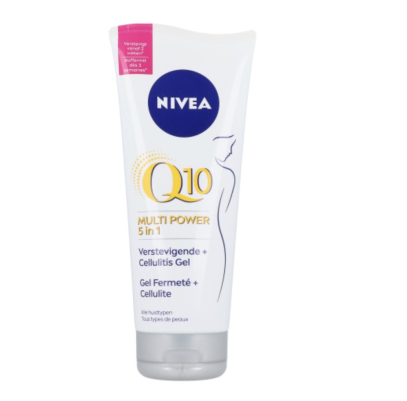 NIVEA Q10plus Verstevigende Good-Bye-Cellulite Gel verstevigt je huid in 2 weken en vermindert de zichtbaarheid van cellulites binnen 3 weken. De gel bevat een krachtige formule verrijkt met Huideigen Q10plus, L-Carnitine en Lotusextract om cellulites zichtbaar te verminderen zonder dat je de gel in hoeft te masseren. Q10 komt je wellicht bekend voor, maar wat doet het precies? Q10 is in het kort een huideigen co-enzym dat de energieproductie in de cellen stimuleert. Als je ouder wordt vermindert de hoeveelheid Q10 in de huid. Dat betekent dat de huidcellen minder beschermd zijn en minder energie krijgen om zich te vernieuwen. De huid veroudert, verslapt en krijgt rimpels. Geen ramp, maar wel fijn om te weten dat NIVEA de hoeveelheid Q10 in je huid weer aanvult. De huid wordt gladder, steviger en straalt weer die jeugdige energie uit. Vind je het gek dat NIVEA dit ingrediënt in haar gezichts- en lichaamsproducten verwerkt!