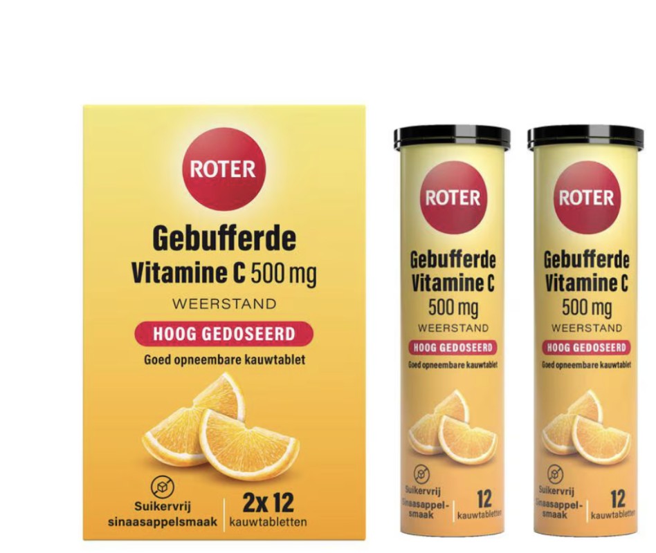 Roter Gebufferde Vitamine C ondersteunt de natuurlijke weerstand. Dankzij de gebufferde formule wordt de zuurbelasting op de maag verminderd, hierdoor is deze hooggedoseerde kauwtablet milder voor de maag en de darmen, wat prettig kan zijn bij hogere dosering of voor mensen met een gevoelige maag. De goed opneembare kauwtabletten hebben een lekkere sinaasappelsmaak en zijn geschikt voor dagelijks gebruik. De tabletten zijn glutenvrij, suikervrij, lactosevrij en bevatten vegan ingrediënten.