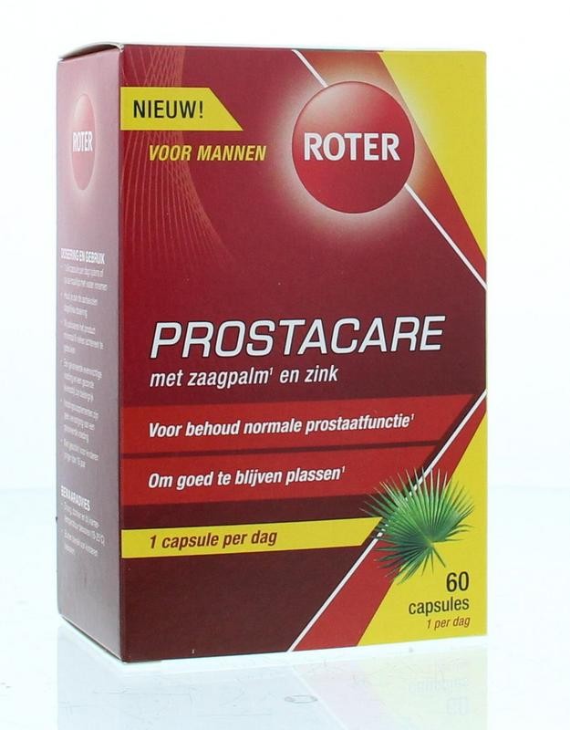 Roter Prostacare is speciaal ontwikkeld voor mannen van veertig jaar en ouder. Vanaf deze leeftijd kan de prostaat in omvang toenemen en dit kan het plassen beïnvloeden. Dat komt doordat de prostaat om de urinebuis ligt. Dit hoort allemaal bij het natuurlijke proces van het ouder worden. Dit voedingssupplement bevat zink en zaagpalm. Deze extracten en stoffen ondersteunen de prostaat en helpt bij goed blijven plassen.