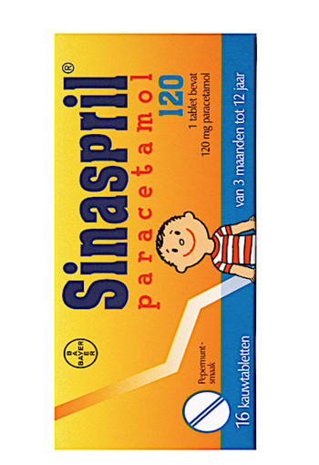 Sinaspril paracetamol 120 is een pijnstillend en koortsverlagend middel. De tabletjes kunnen makkelijk worden opgekauwd door kinderen. De pepermuntsmaak