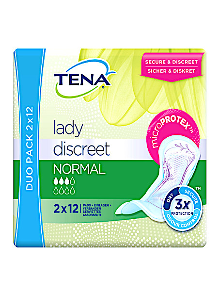 Tena Lady Discreet Normal is ontworpen voor het verlies van druppels urine. Het incontinentieverband is 20% dunner dankzij microPROTEX en biedt drievoudige bescherming tegen urineverlies, geurtjes en een vochtig gevoel. De absorberende zone van het verband zorgt voor een snel, droog gevoel.
