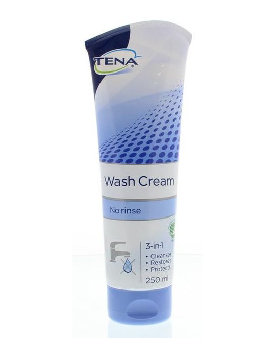 TENA Wash Cream is een milde emulsie die ontwikkeld is voor reiniging van het gehele lichaam. Het heeft een pH-waarde van 5,5 en kan zonder afdrogen achterblijven op de huid, omdat de crème vochtinbrengende en beschermende eigenschappen heeft.
