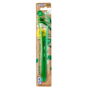 De TePe GOOD Tongreiniger is onderdeel van de TePe GOOD™ lijn, gemaakt van bio-based plastic. De TePe GOOD Tongreiniger is ontworpen om bacteriën op de tong te verwijderen, om de mondgezondheid te verbeteren en een slechte adem te voorkomen. De TePe GOOD Tongreiniger is zo ontworpen dat hij overeenkomt met de natuurlijke vorm van de tong en maakt het makkelijker om ver achterin in de mond te komen. De slanke vorm vermindert kokhalzen. De tongschraper heeft drie licht verhoogde reinigingsbladen voor een drievoudig effect, wat betekent dat één haal meestal voldoende is om de tong efficiënt te reinigen.