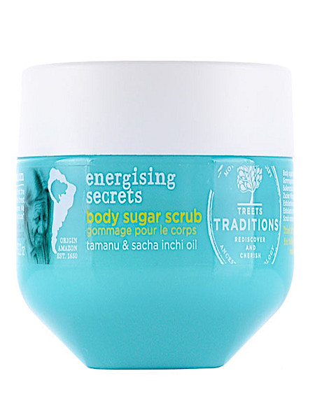 Treets Traditions Energising Secrets suiker scrub vindt zijn herkomst in warme vochtige regios zoals de Amazone. Combinaties van vruchten en oliën worden al generaties lang gebruikt om de huid te herstellen en te beschermen. Traditionele Tamanu en Sacha Inchi olie voeden de huid, terwijl rietsuiker zachtjes de dode huidcellen verwijdert, waardoor de huid weer opleeft. Dit beproefde recept helpt ons om een jeugdige en veerkrachtige huid te behouden.