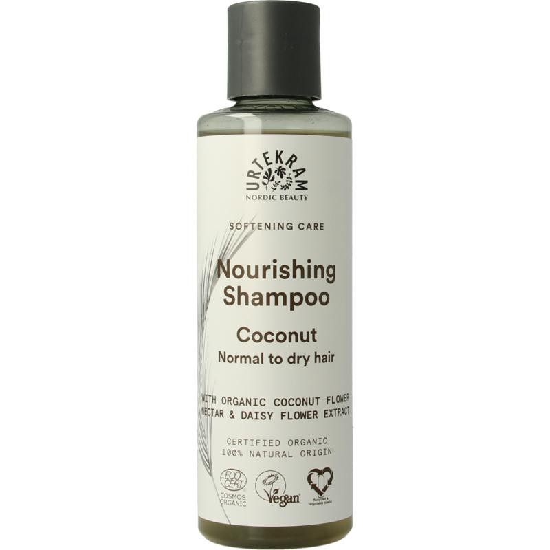 Urtekram® Kokos shampoo met biologische kokosnectar en extract van madeliefjes om natuurlijk vocht in te brengen terwijl zeewier het haar revitaliseert. En daarnaast ruiken uw haren heerlijk naar de natuurlijke zoetheid van kokos.