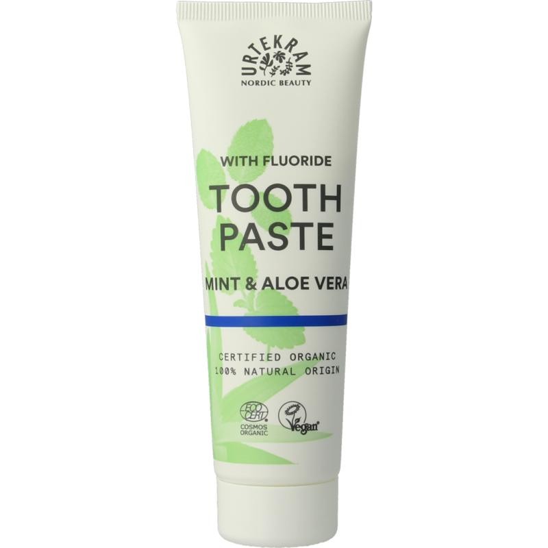 De nieuwe Cosmos Organic standaard staat het gebruik van natrium fluoride toe. Daarom lanceert Urtekram de nieuwe Mint Tandpasta met Fluor en aloë vera voor die mensen die de bescherming van fluoride willen naast de natuurlijke bescherming van de tandpasta's van Urtekram.