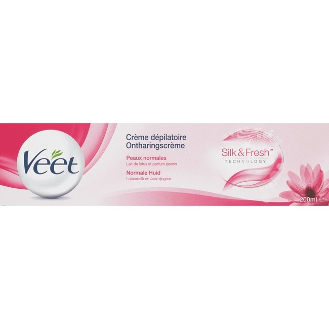 Veet Silk & Fresh Ontharingscrème Normale Huid is een ontharingscrème die met gemak de meest korte en fijne haartjes verwijdert. Deze formule is geschikt voor de normale huid en verrijkt met lotusmelk en jasmijn extract wat een heerlijke geur aan dit product geeft. Veet Ontharingscrème Normale Huid laat je huid tot een week lang zacht en glad aanvoelen.
