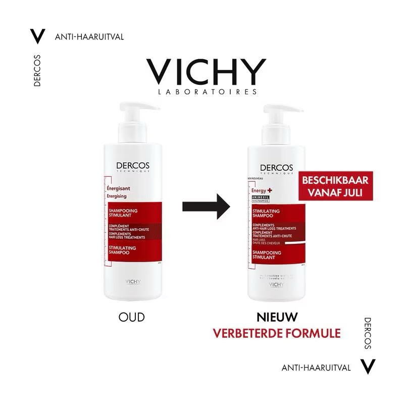 De Energy + Shampoo van Vichy Dercos Technique is ontworpen voor mannen en vrouwen die kampen met lichte tot vergevorderde haaruitval. Het is de enige shampoo met Aminexil van Vichy, een van de voornaamste cosmetische moleculen in de strijd tegen haaruitval. De effecten van deze shampoo zijn klinisch bewezen in 2 studies.