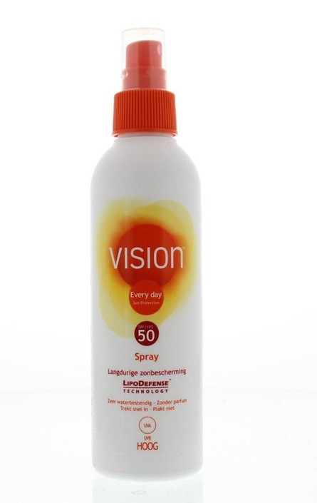 Vision Every Day Langdurige Zonbescherming Spray SPF50 beschermt langdurig tegen de straling van de zon. De spray bevat 5-sterren UVA-bescherming en is waterbestendig. Daarnaast is het product 100% parfumvrij en trekt het zeer snel in waardoor de huid niet vet en plakkerig aanvoelt.