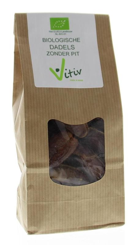 De biologische dadels zijn afkomstig uit Tunesië. De dadels zitten vol voedingsvezels, vitaminen, antioxidanten en mineralen. Dadels zonder pit zijn minder lang houdbaar dan dadels met pit aangezien de pit goede stoffen bevat voor de houdbaarheid van de dadel.