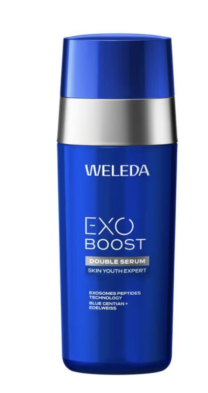 Ervaar de perfecte synergie tussen natuur en wetenschap met het WELEDA Exo Boost Double Serum Blauwe Gentiaan. Deze 100% natuurlijke, geavanceerde 2-fasen formule helpt zichtbaar de belangrijkste tekenen van huidveroudering te verminderen en geeft de huid een jongere uitstraling. Het serum combineert het Collagen+ Active Complex met biologische blauwe gentiaan, biologische edelweiss en Centella Asiatica met een innovatieve Exosomes Peptides Technology. Deze technologie helpt peptiden diep in de huid af te leveren om de huid intensief te verzorgen en te ondersteunen bij huidvernieuwing. Het resultaat: een gladdere, stevigere en elastischere huid met een stralende glow en een egalere teint. De huidverdraagzaamheid is dermatologisch bewezen.