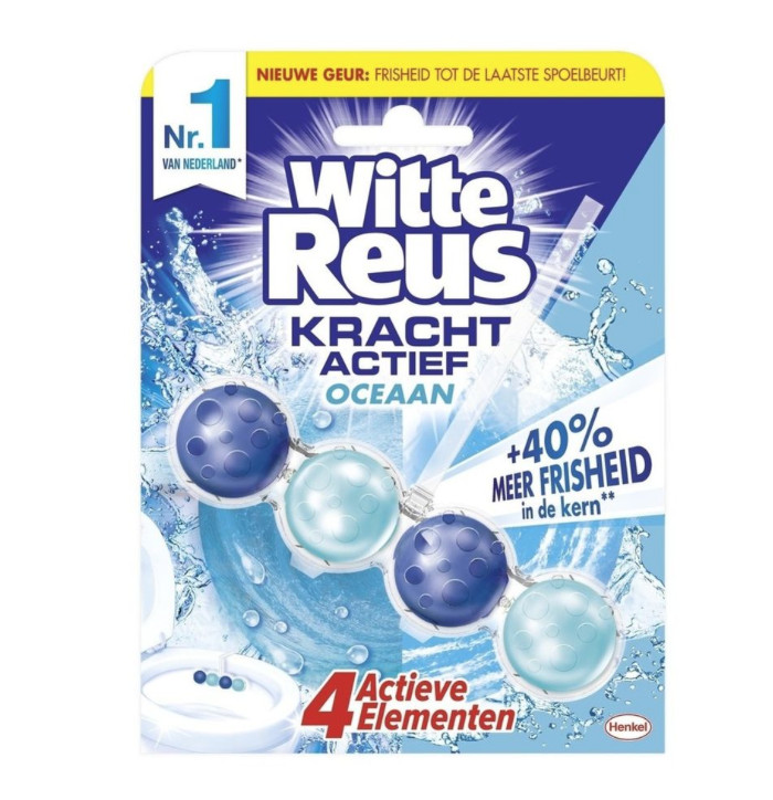 Witte Reus Kracht Actief Oceaan zorgt voor een schoon toilet en een heerlijke frisse geur van de eerste tot de laatste spoelbeurt.