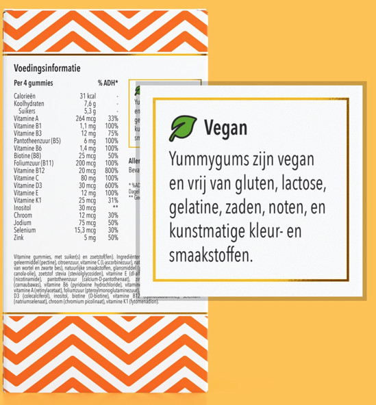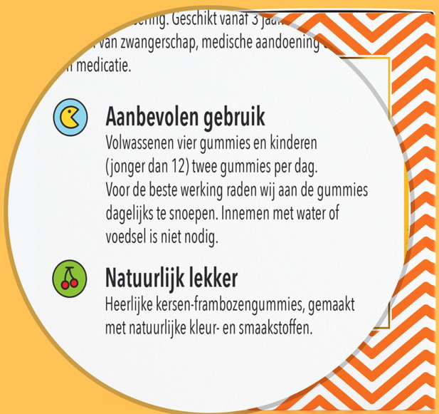 Kinderen vanaf 12 jaar mogen, net als volwassenen, vier gummies per dag. Voor kinderen jonger dan 12 is de dosering twee gummies per dag. Onder de drie jaar raden wij Yummygums af. De meeste artsen zijn het erover eens dat er tot de leeftijd van drie jaar een verhoogd risico op verstikkingsgevaar is. Daarom raden wij het gebruik van Yummygums voor kinderen onder de drie jaar af. Ook hebben de potten een kindveilige deksel.