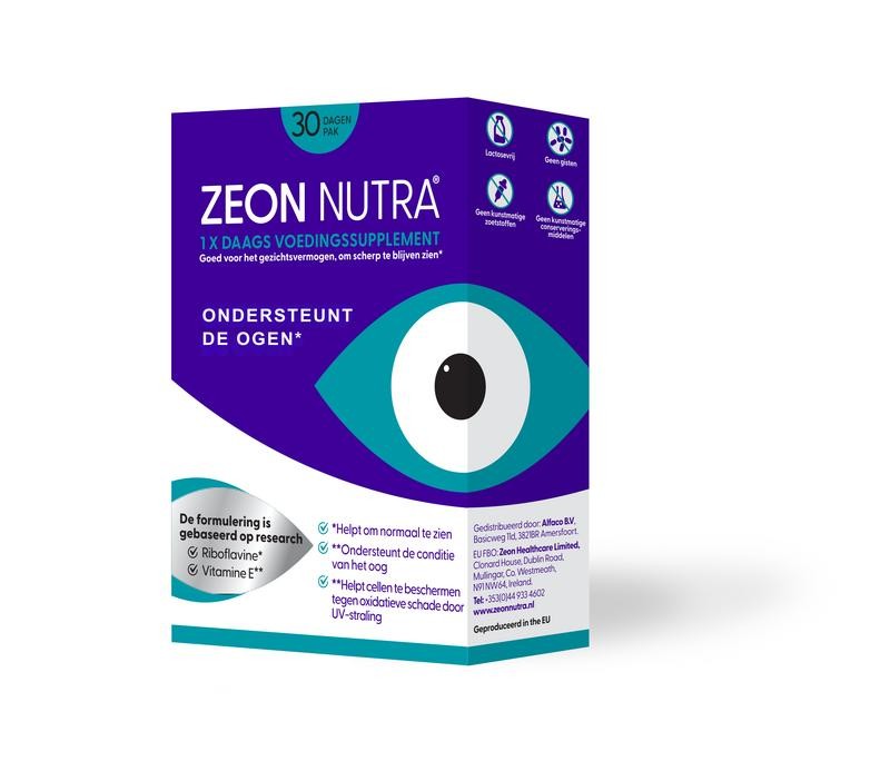 SOJA-olie, Omhulsel van capsule: rundergelatine, Bevochtigingsmiddel: glycerol, rundergelatine, Water, Kleurstof: ijzeroxiden- en hydroxiden, Meso-zeaxanthine, Vitamine E, Luteine, Zeaxanthine, Kokosolie, Verdikkingsmiddel: Bijenwas, wit en geel, Riboflavine, Emulgator: SOJAlecithinen